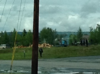 Another first since we got home: on June 21, our first potlatch! It was for the funeral of the mother of the pastor of Fairbanks Native Bible Church, and was a celebration of her full life and her new life in Christ in recent years. It was held at the Chief David Salmon Tribal Hall in Fairbanks, followed by a potlatch, which we found to be a unique and great experience! Elders sat at tables, while we youngers sat in chairs with paper runners on the floor in front of us (as pictured). Each place was given a paper plate, bowl, tableware, S&P all enclosed in a gallon ziploc freezer bag, which I assumed was just for ease of distribution. When all food and people were in place, the men who had been cooking in cut-down 55-gallon drums over an open fire all day (pictured, though not great) brought those drums in and started hauling them down the aisles, dipping out moose soup into every ready bowl, as fast as they could go! Behind them came other people handing out servings of various salads, breads, and sides, and everything kept going around and around until everyone was full. Then, everyone held out their ziploc bags to start filling those with leftovers to take home! It was so yummy to have fresh (out-of-season) moose, both in the soup and cut pieces. (Natives can get permits to hunt a moose for a funeral potlatch any time of year.) Following cleanup, bands set up, and we hear there was dancing until late, though, regretfully, we had to get our tired crew home and couldn’t stay. Next time…