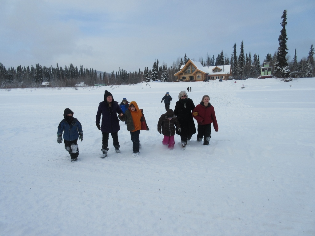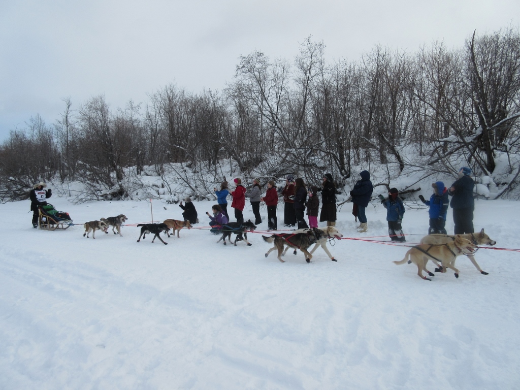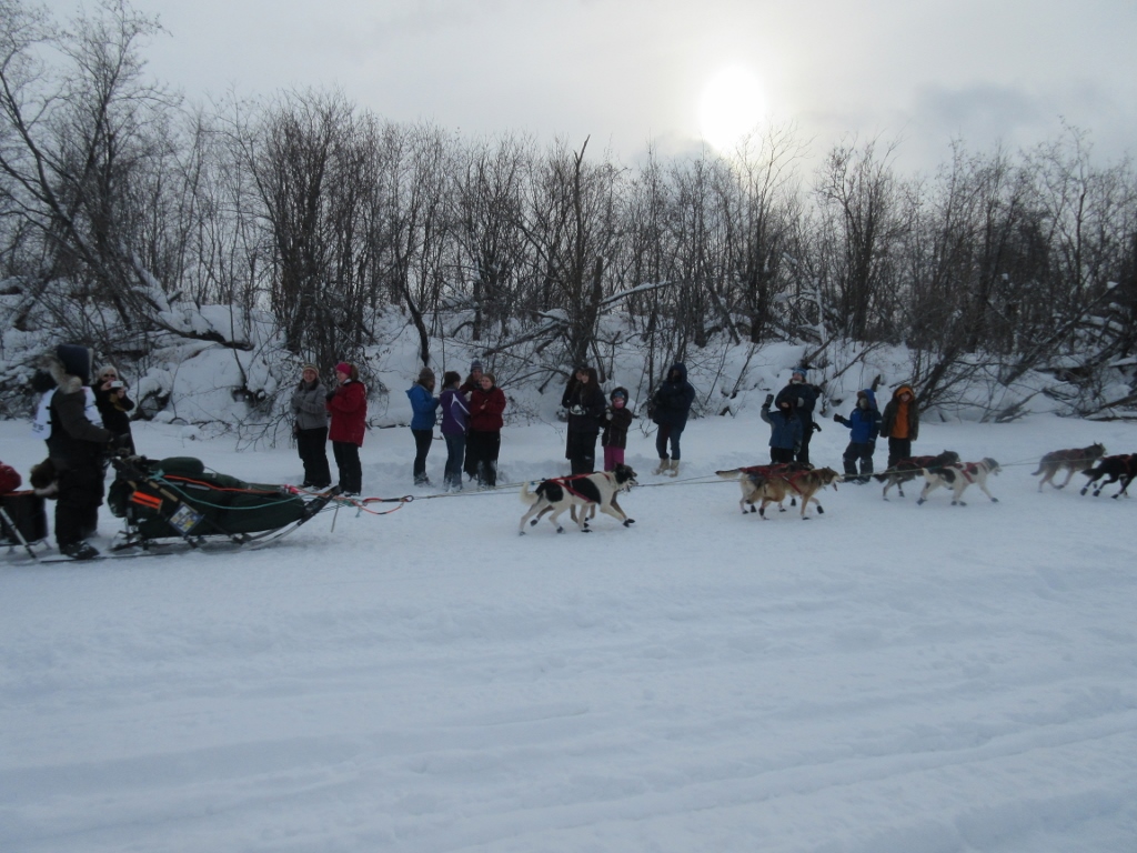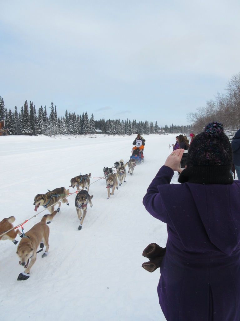 Due to the lack of snow further south, Fairbanks had the once-in-a-blue-moon opportunity to be the starting point of the Iditarod, which normally starts near Anchorage (and they still had to truck in some snow to cover some spot). A lady in our church has a home on the Chena River, about 15 minutes from the starting line, so she hosted a party. We were able to go out on the ice and cheer on the teams as they passed within arm’s reach!