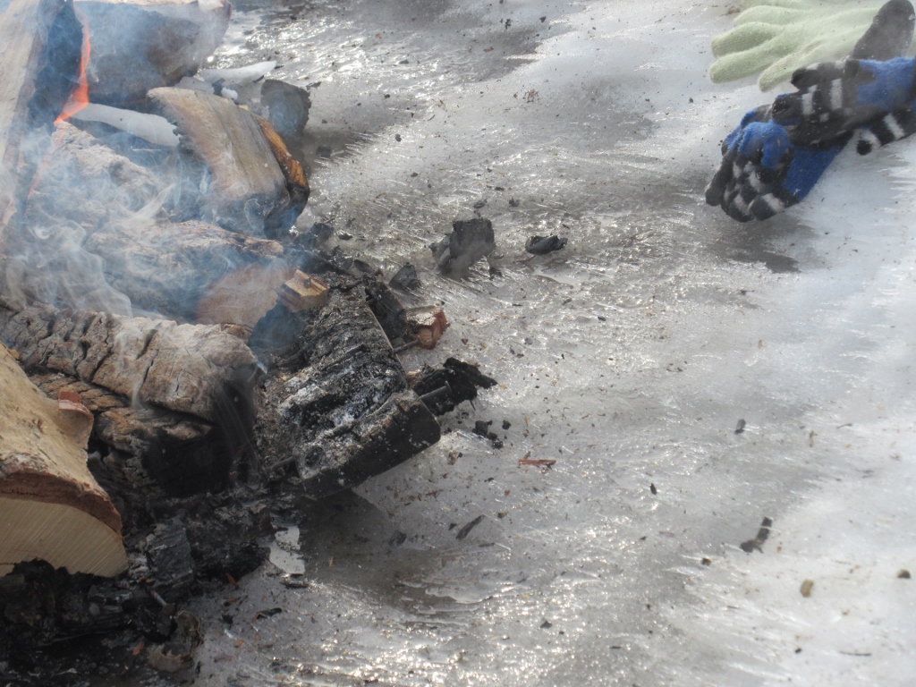 The foreground is where we walked out on to the river; the top was slushy from recent rain and warm temps