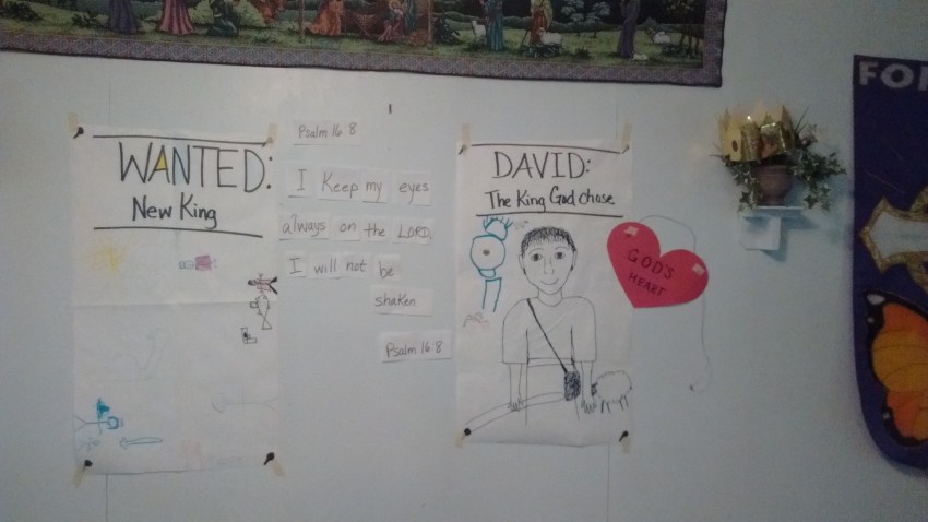 “Saul, Saul, David” (think “Duck, Duck, Goose”): “it” wears “God’s heart”, and when he chooses David, David runs after God’s heart (Yep, David was a man *after* God’s own heart!)