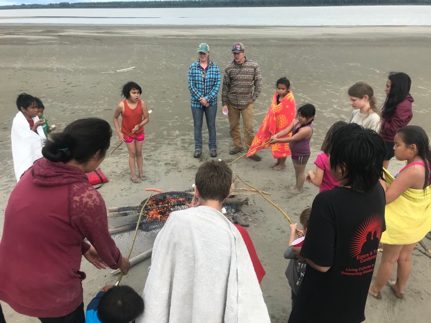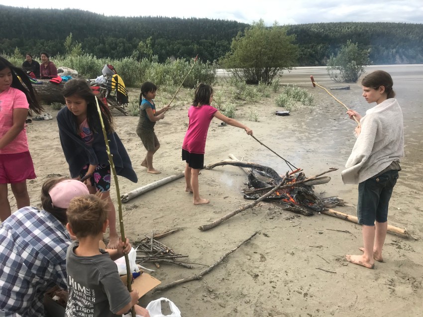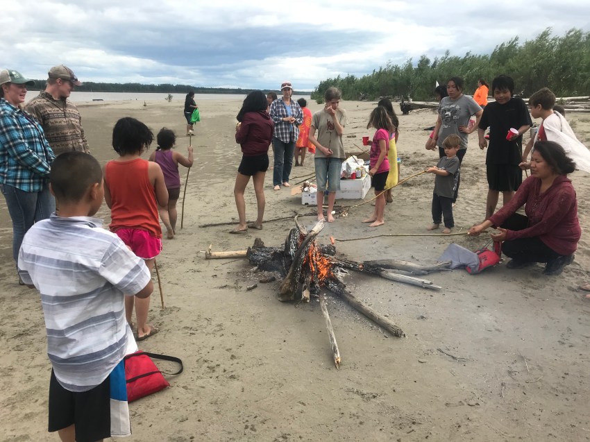 Saturday (day 5) was Family Day to celebrate the end of the Bible Day camp. Parents volunteered their boats to drive us out to Hotdog Island, 6 miles down the Yukon.
