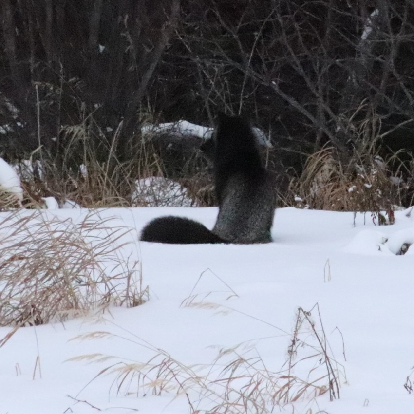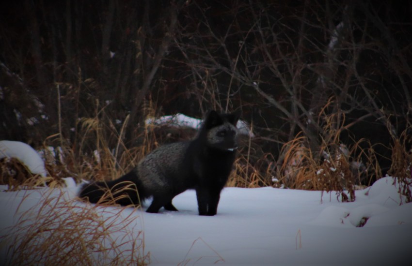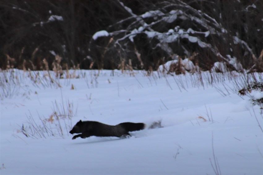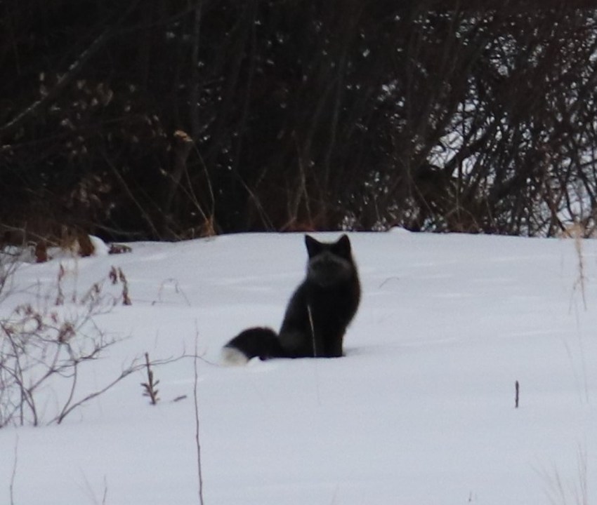 Our favorite encounter on the Alcan: a silver fox! We watched it hunt for 15 minutes or so – beautiful!