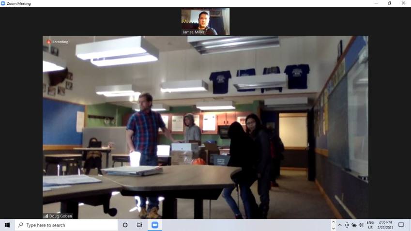 James with the class via Zoom