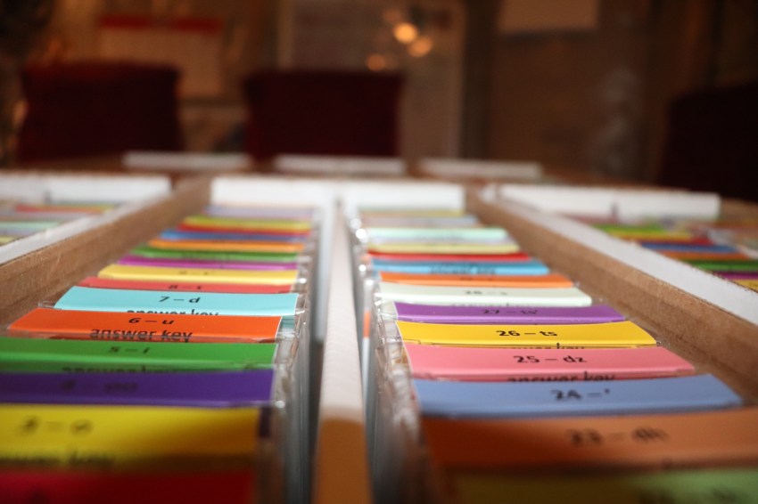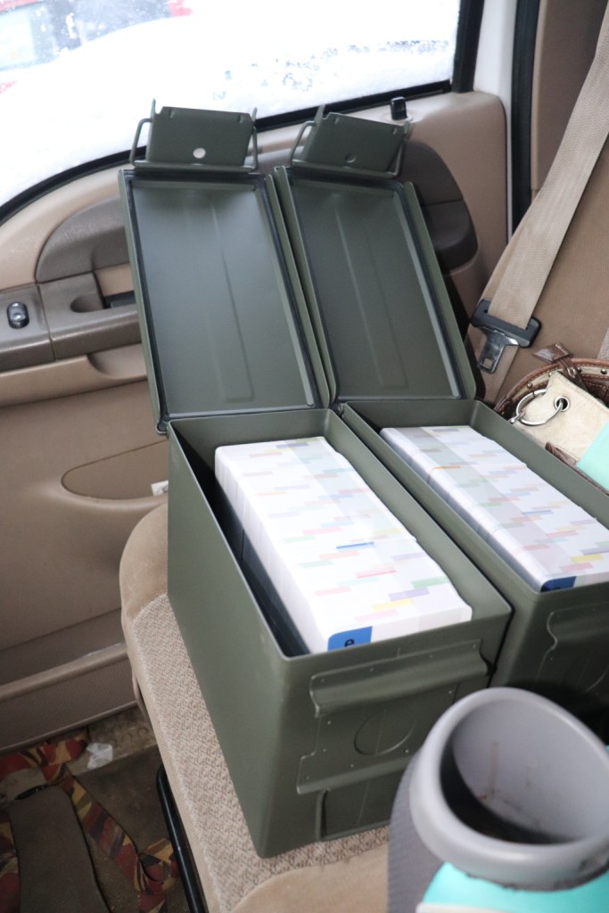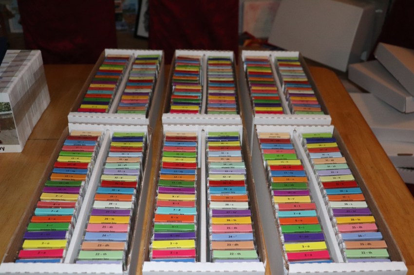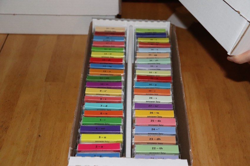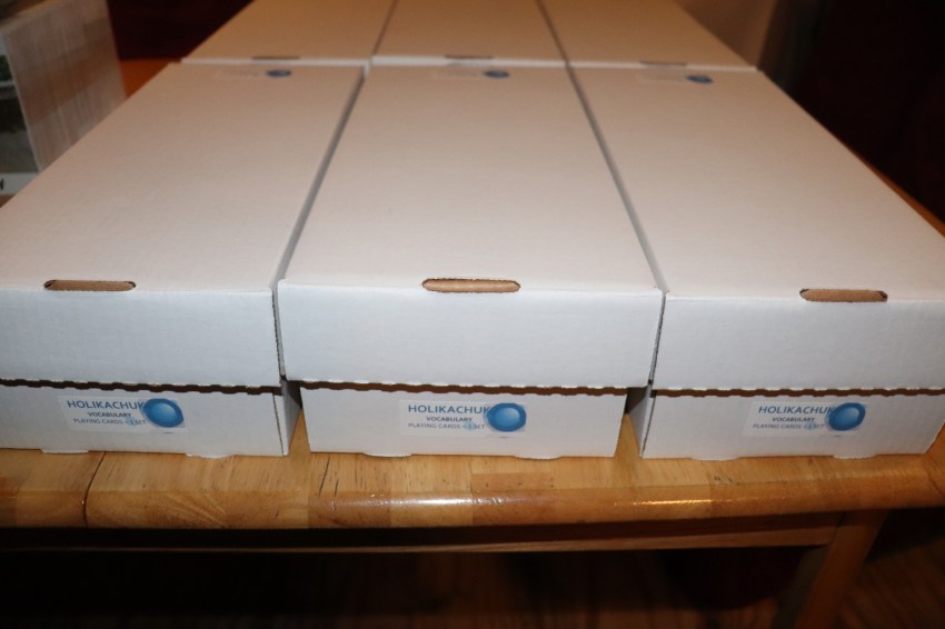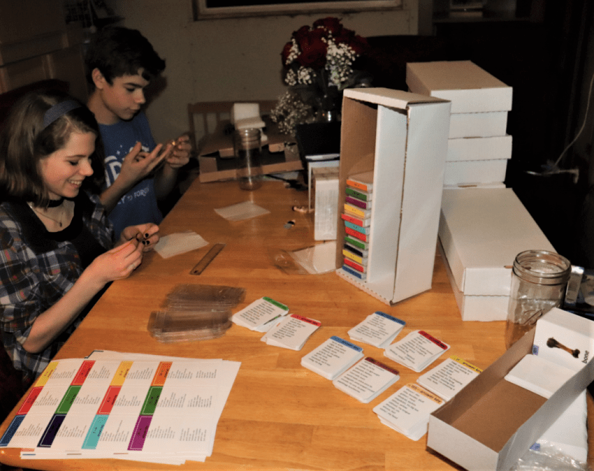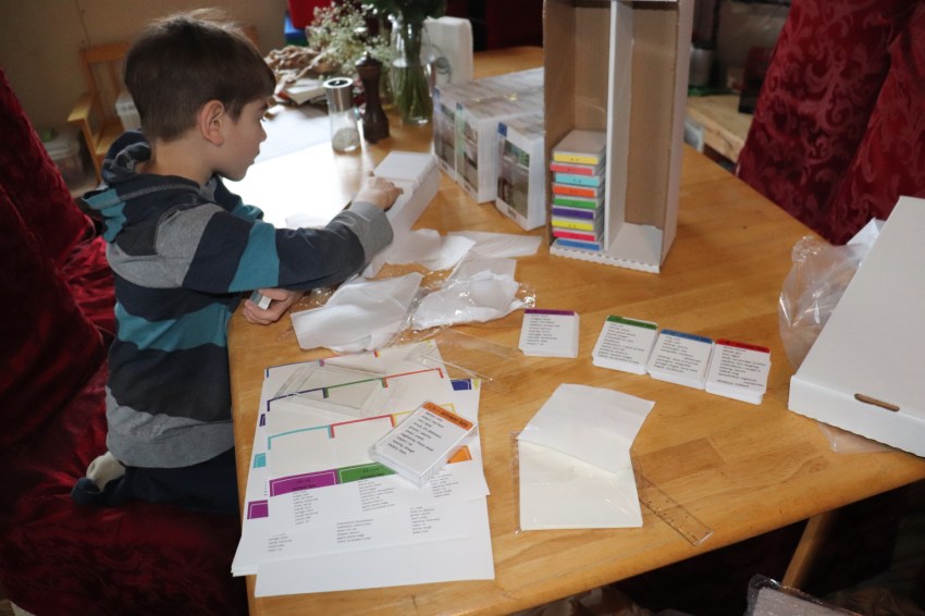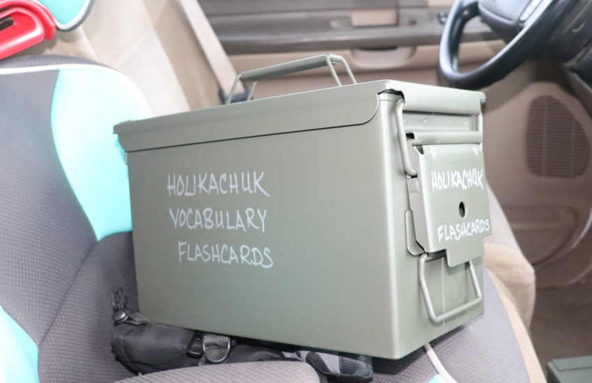 You wouldn’t believe the extensive search that ended with ammo boxes being the perfect fit for the flashcards! -