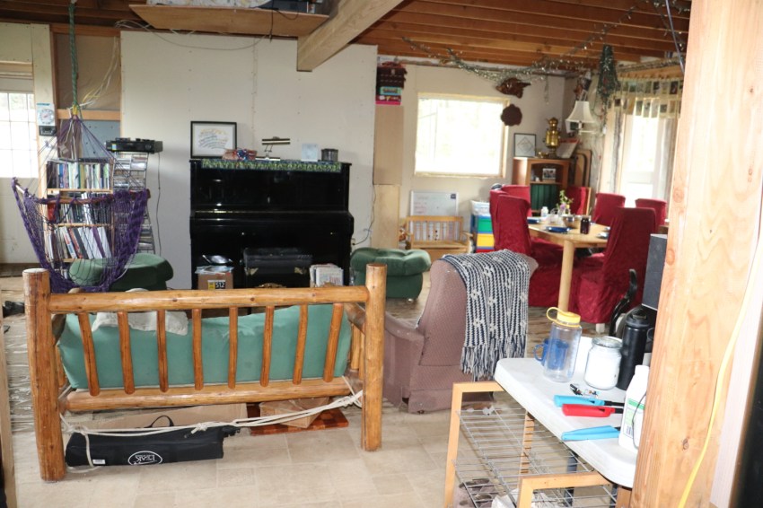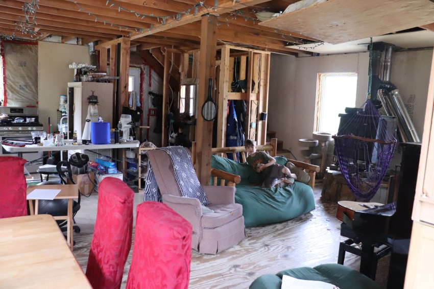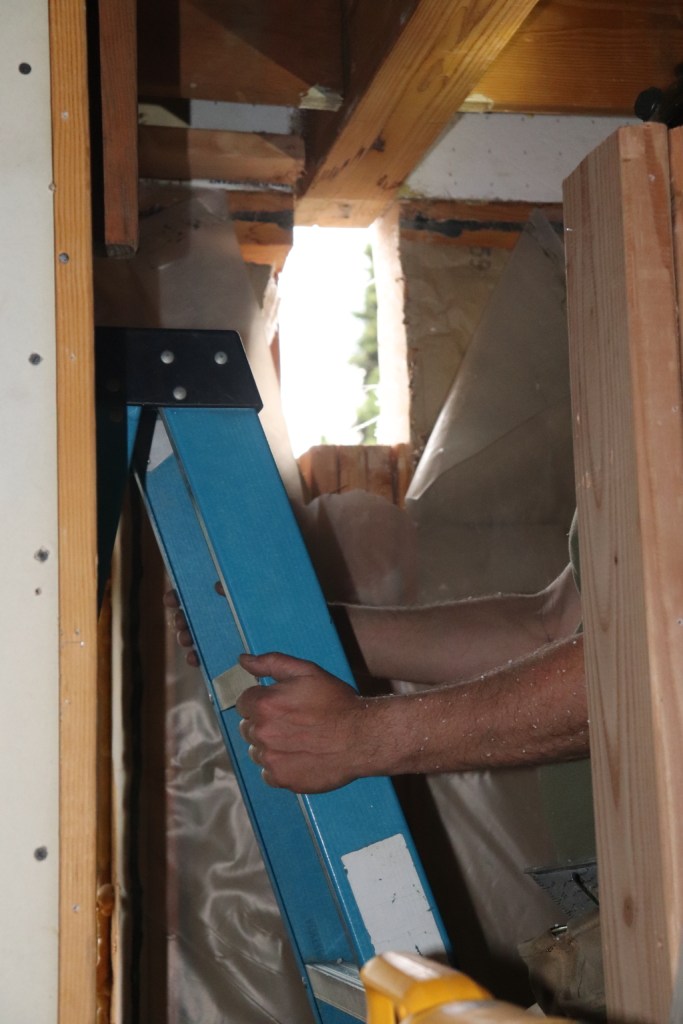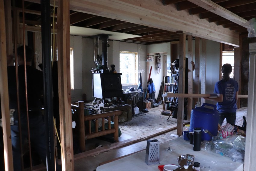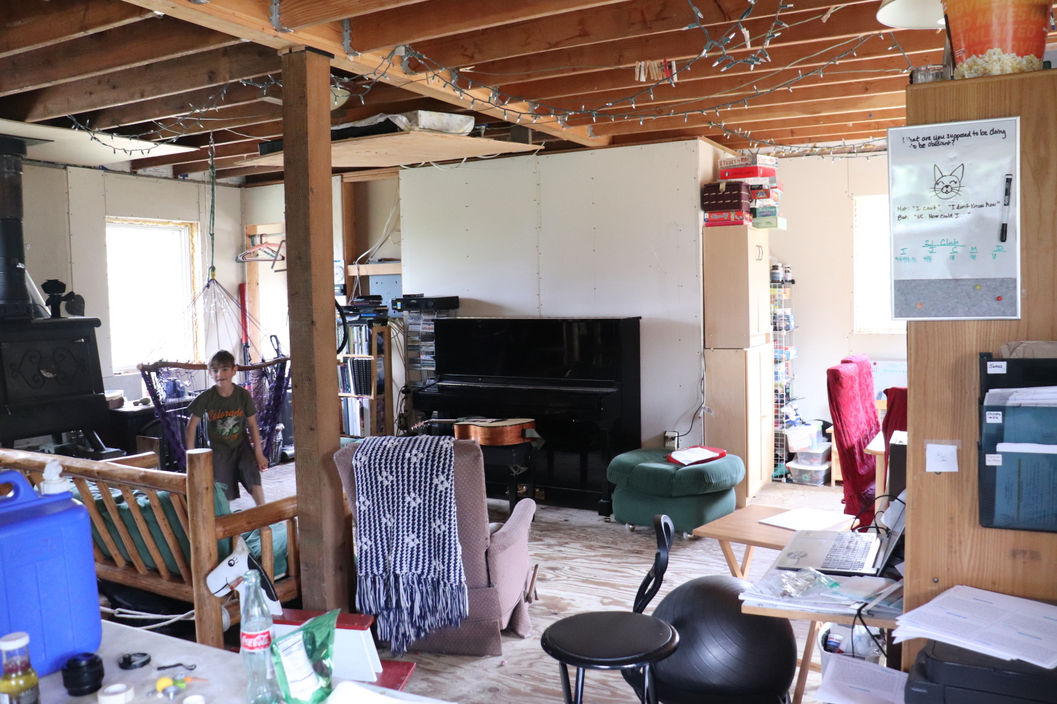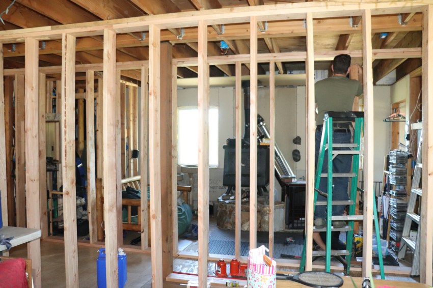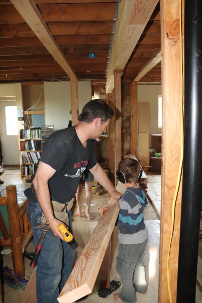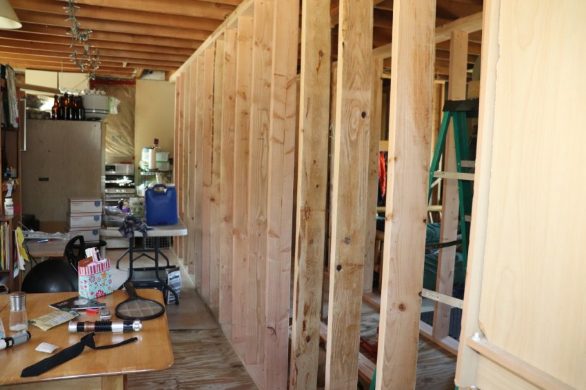 Space and stability! James is pretty pleased to have zero deflection in the beam when the walls were removed, and the joists are visibly straight.