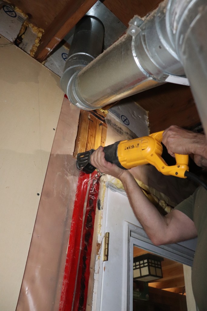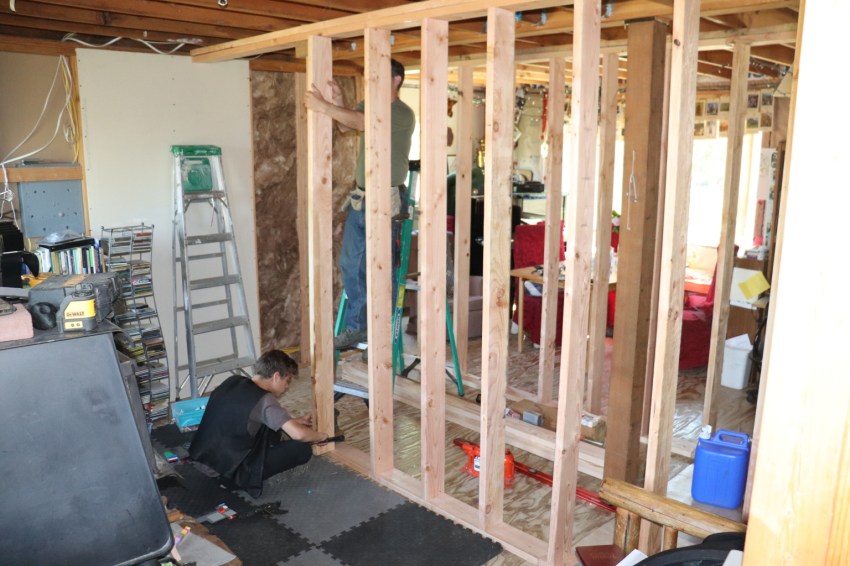 Plastic was hung on the outsides of these walls to try to keep dust contained. Going from the dining room to the kitchen was an adventure! 😉