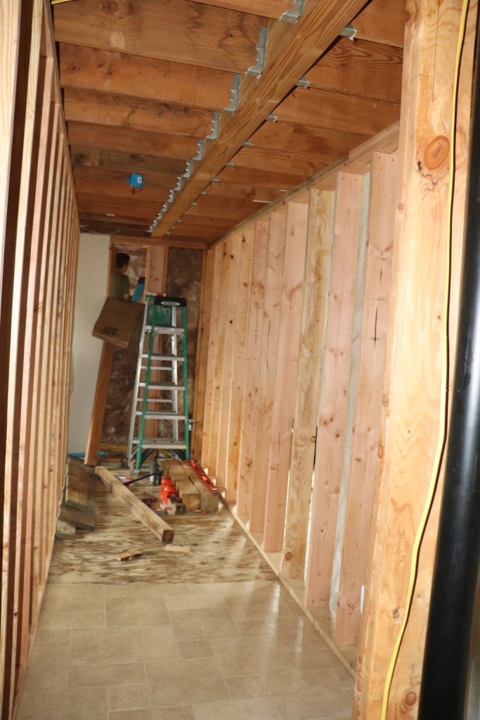 Step 1: Build a supporting wall on each side of the beam to support the 2nd floor (rearranging the kitchen and living room as well). Posts were also installed in the basement beneath these temporary walls.