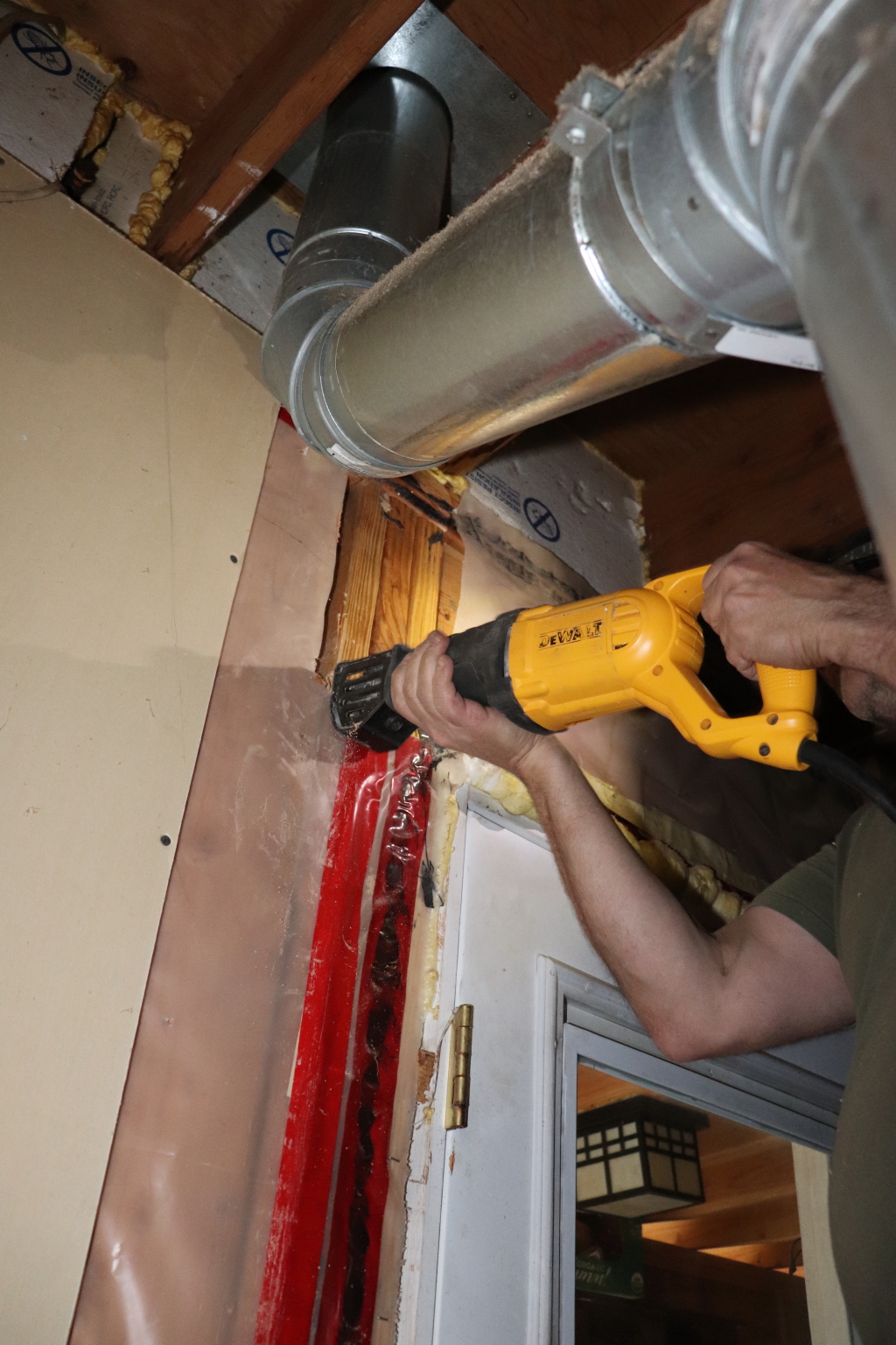 Cutting beneath the existing beam to have room to drop it down for removal as well as the space for the new one