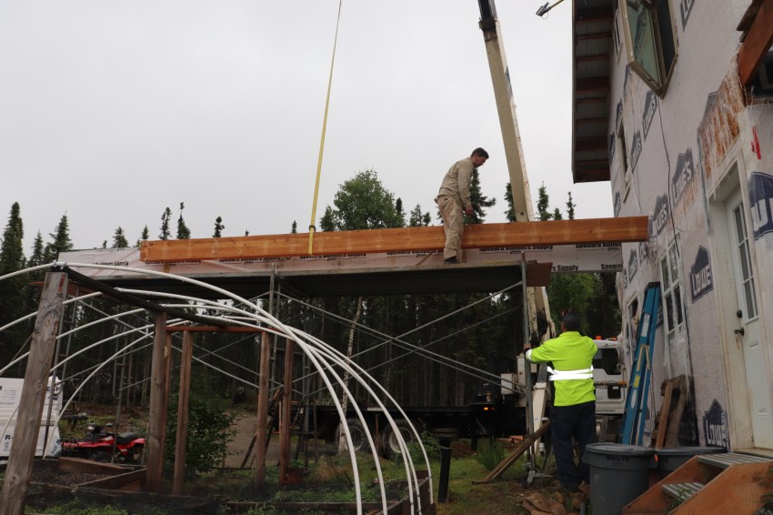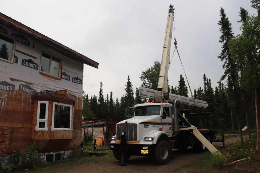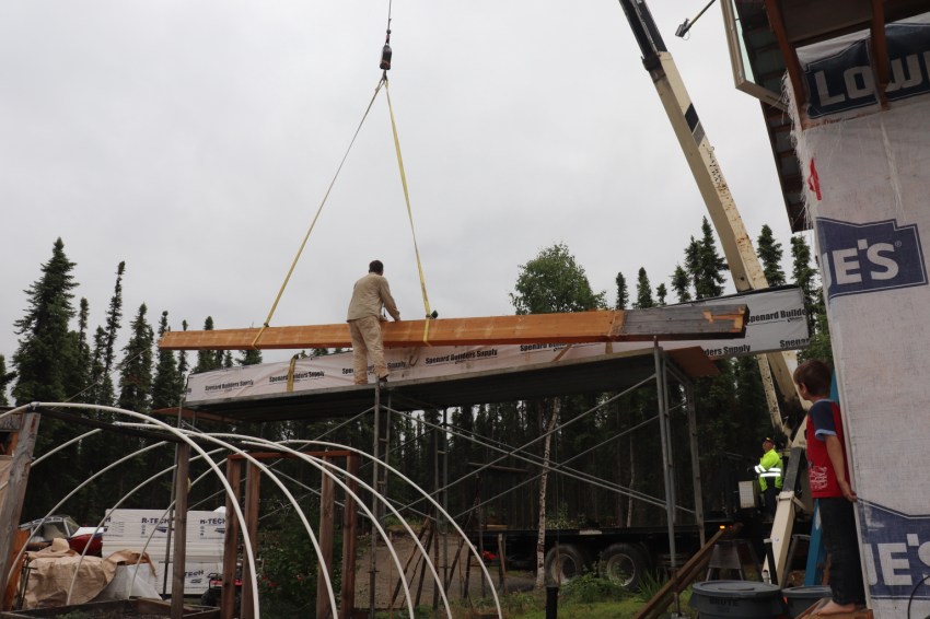 The boom truck with the new beam arrived in the morning rather than the afternoon as scheduled, so our tempo for pushing the old beam out had a sudden panicky increase