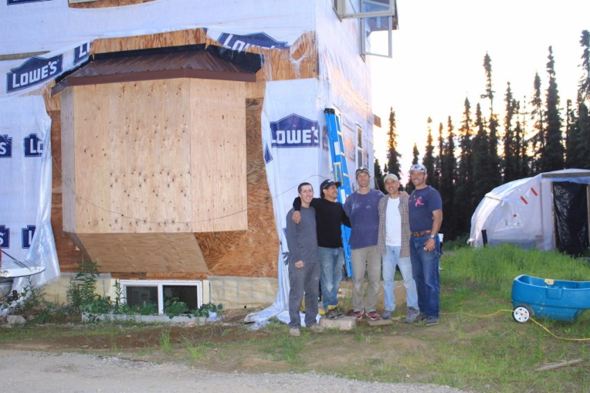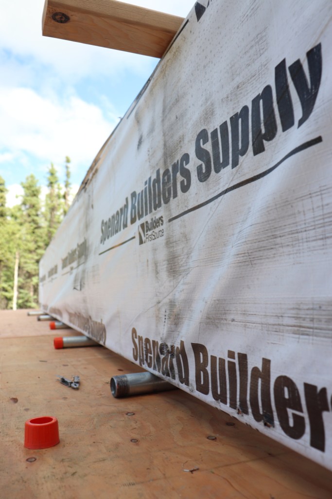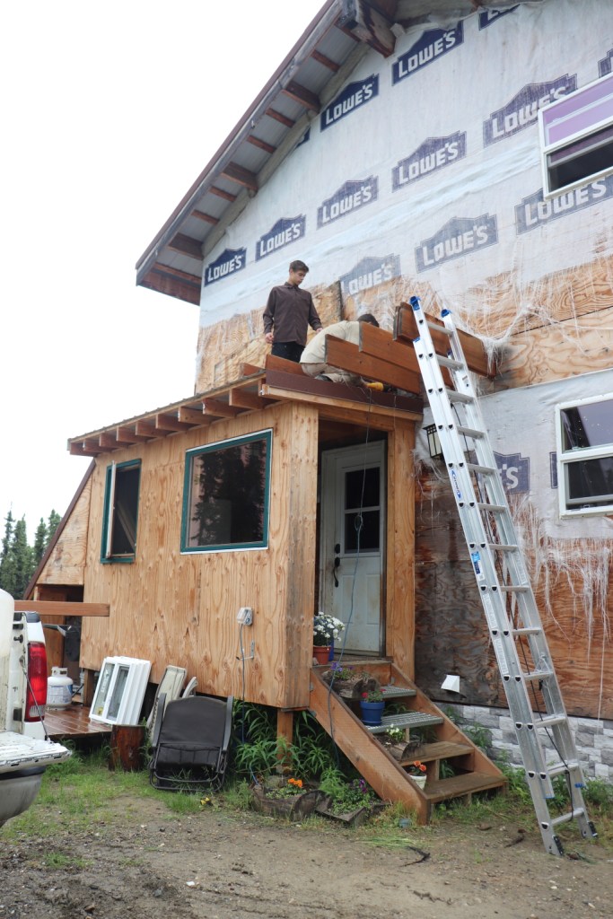 Getting the windows installed was actually one of the several “outside wall”-involved projects prefacing our main project for the summer: siding!! Before we could do anything else, we had a structural issue to address: the main beam that supports the second floor. Because of its span, a post had to be a fixture in the middle of the first floor, and it was also noted to be sagging some. After some engineering consultation, we began what became a 2-week project to replace the 12″ high beam with a 24″ one. Lots of prayer, ingenuity, muscle – and we are thankful to have come through injury free and with an improved structure!